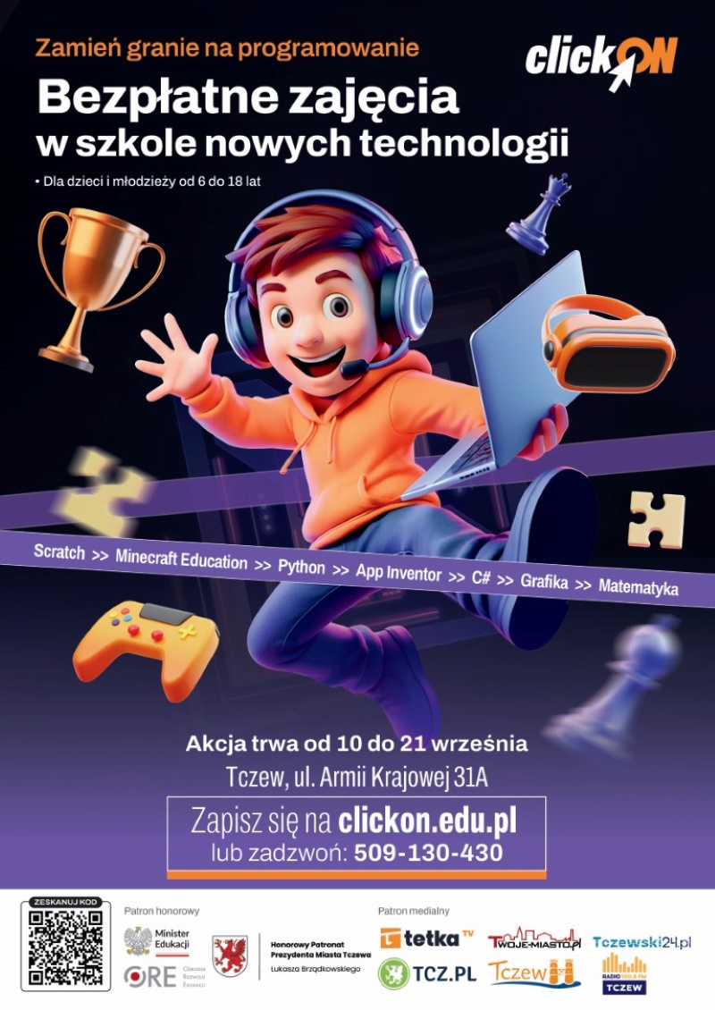 ClickON to okazja, by „zamienić granie na programowanie” i pokazać dzieciom, że technologia może być inspirującą drogą do rozwoju. Udział w zajęciach jest całkowicie bezpłatny, a liczba miejsc ograniczona.