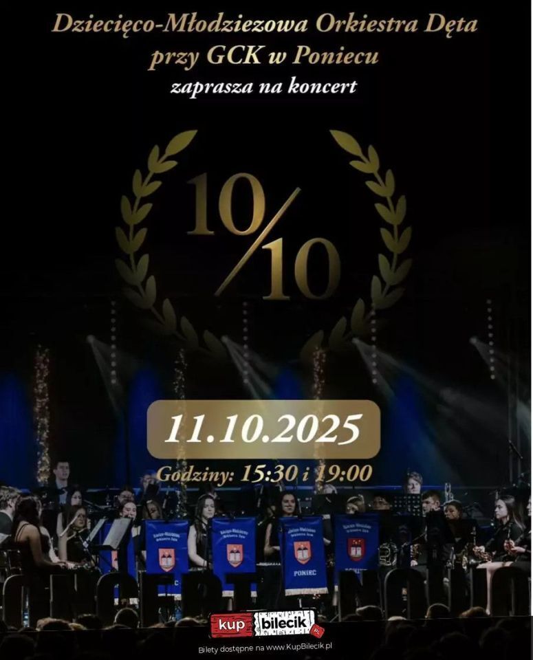 Z ogromną radością i dumą ogłaszamy, że już: 11 PAŹDZIERNIKA 2025 odbędzie się KONCERT 10/10. Na scenie wystąpi: Dziecięco-Młodzieżowa Orkiestra Dęta GCK w Poniecu. Zespół, który od lat zachwyca publiczność nie tylko talentem, ale i niezwykłą energią! Skąd nazwa 10/10 ? Dla stałych widzów Koncertów Orkiestry to będzie muzyczna podróż, którą doskonale znają i kochają!