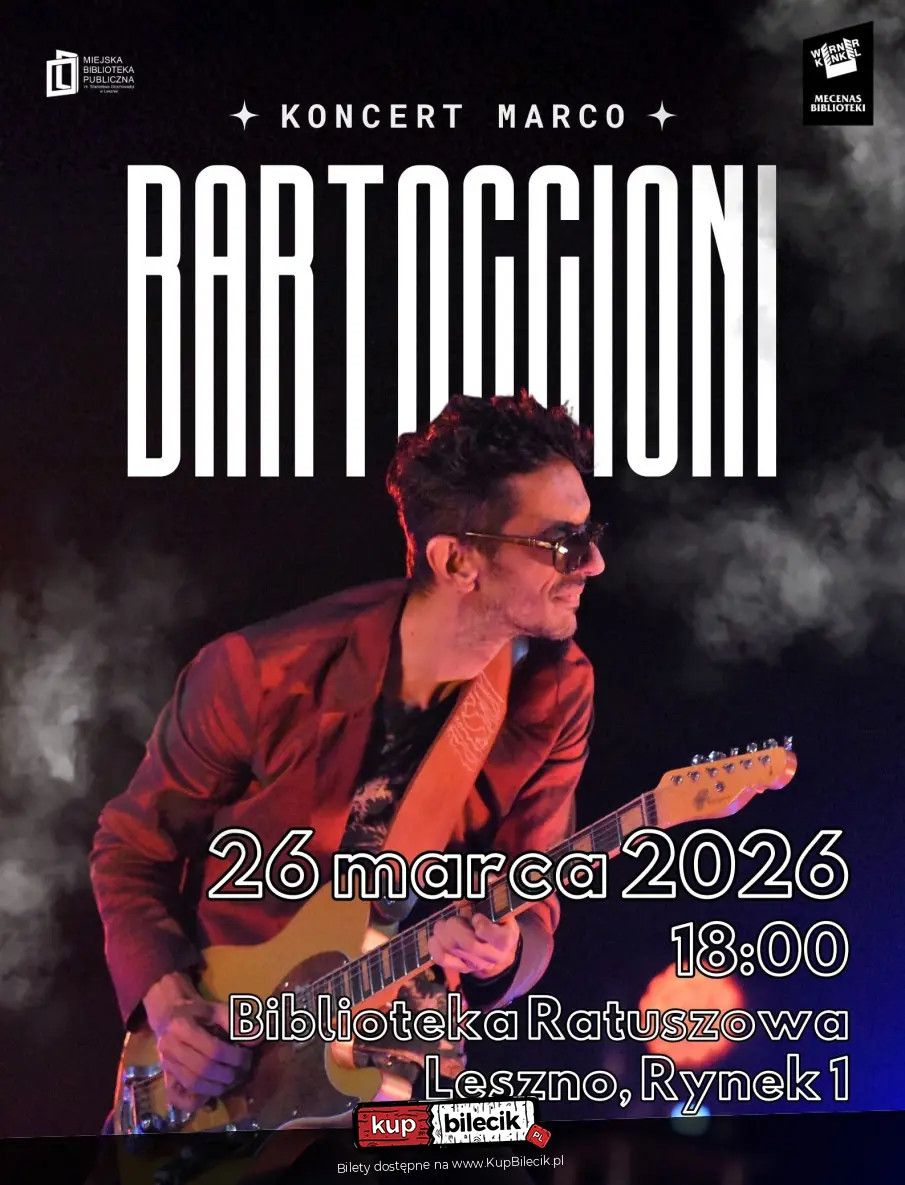 26 marca 2026 roku o godz. 18:00 w Bibliotece Ratuszowej przy Rynku 1 w Lesznie wystąpi Marco Bartoccioni Band - trio prezentujące najnowszy projekt osadzony w klasycznym blues-rocku. Koncert będzie okazją do spotkania z artystami o międzynarodowym doświadczeniu scenicznym i bogatym dorobku fonograficznym